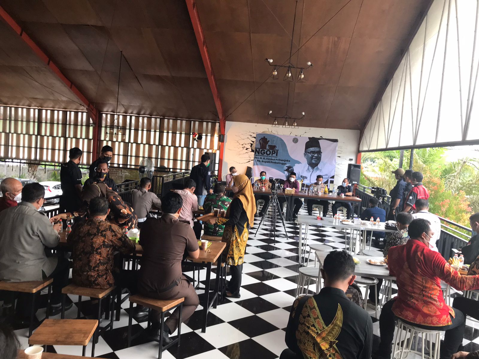 Kraksaan - Selasa, 23 November 2021, bertempat di J'Bing Cafe Probolinggo, Pengadilan Agama Kraksaan mengikuti acara NGOPI (Ngobrol Penuh Inspirasi) yang diselenggarakan oleh Forkopimda (Forum Koordinasi Pimpinan Daerah) Kabupaten Probolinggo. Ngopi dipimpin oleh Plt. Bupati Probolinggo, Bapak Drs. H. A. Timbul Prihanjoko. Acara tersebut dihadiri oleh Ketua Pengadilan Agama Kraksaan, YM Bapak Drs. Safi', M.H.